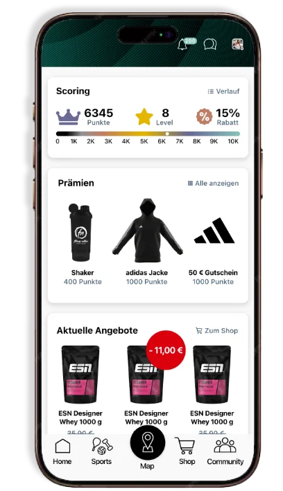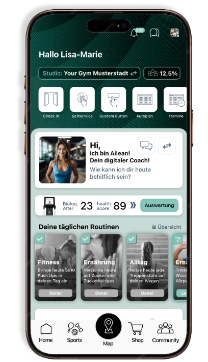Buche Kurse, vereinbare Probetrainings und manage Deine Mitgliedschaften. Profitiere von vielfältigen Integrationen, die Dein Training optimieren. Die App ist Dein persönlicher Coach und verbindet Dich mit einer fitnessbegeisterten Community. Hol Dir Inspiration und entdecke im integrierten Shop alles für Deine Fitness und Ernährung.
